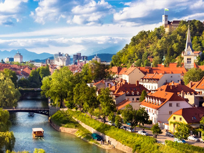 An overview of the Slovenian capital, known for its green spaces and historical route context along the Ljubljanica river.