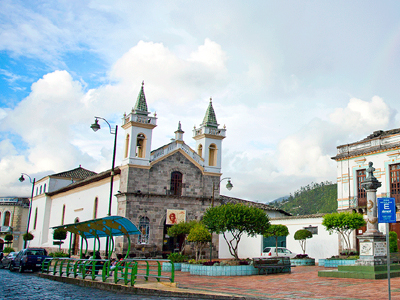 Route context for this Ecuadorian destination located in the Andes, known for its colonial architecture and lake views.
